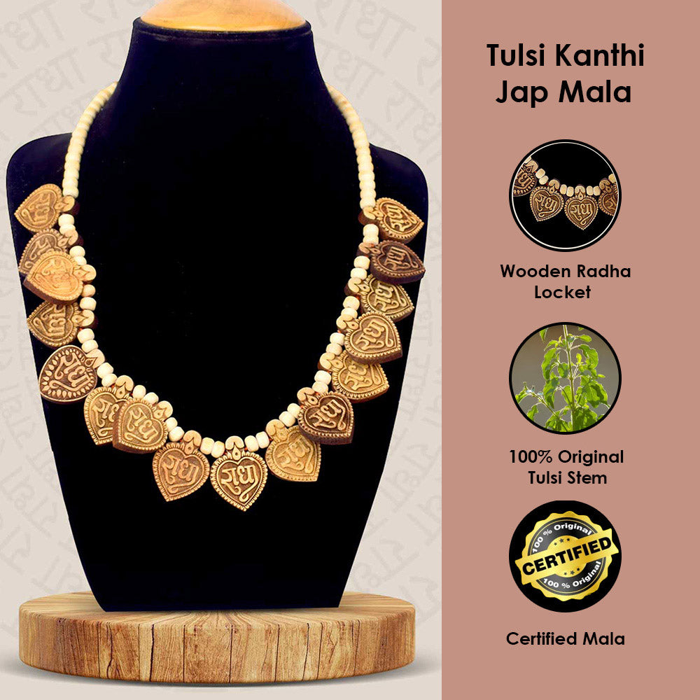100% Original Tulsi Stems Beads with Wooden Radha Locket