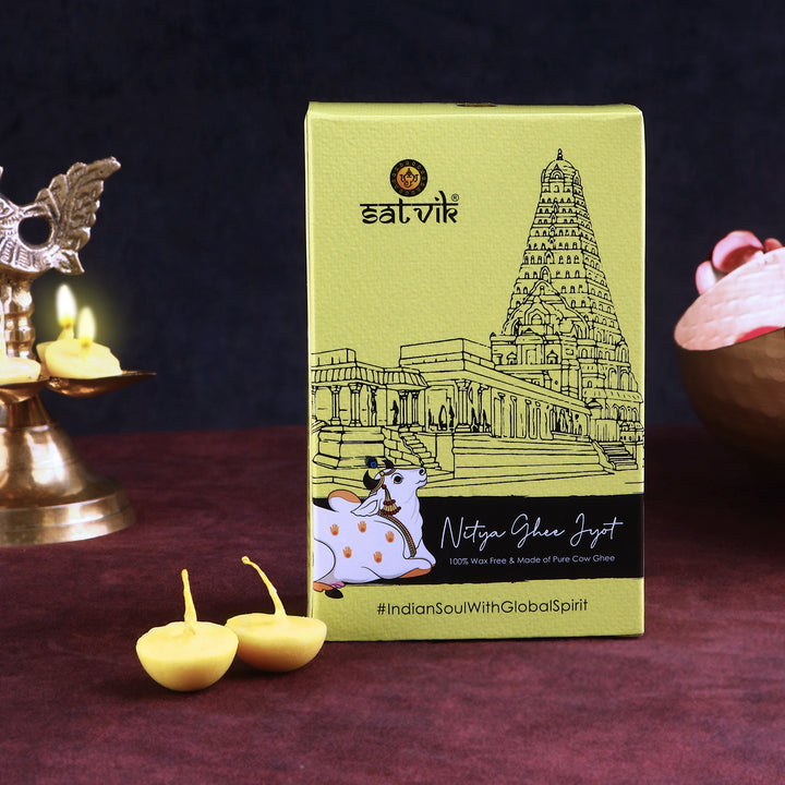 For those who appreciate the simplicity of tealights and candles, SatvikStore.in offers an array of options, each exuding a unique charm. Decorating your home becomes a spiritual journey with Laxmi Charan and Swastik stickers, ensuring that auspiciousness permeates every corner.