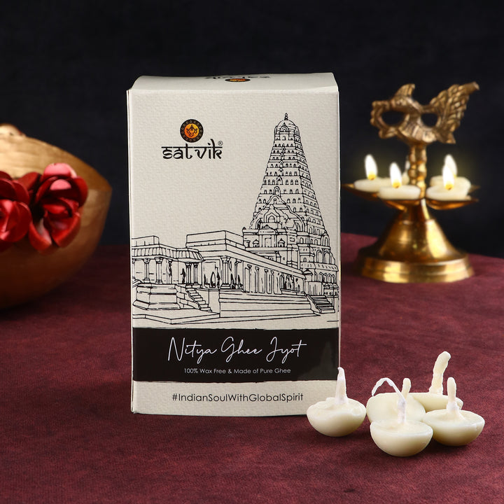 For those who appreciate the simplicity of tealights and candles, SatvikStore.in offers an array of options, each exuding a unique charm. Decorating your home becomes a spiritual journey with Laxmi Charan and Swastik stickers, ensuring that auspiciousness permeates every corner.