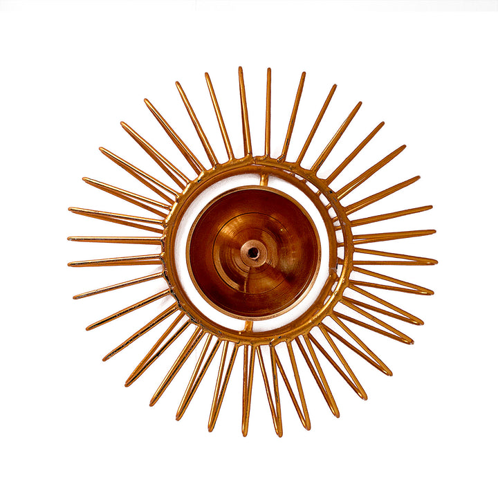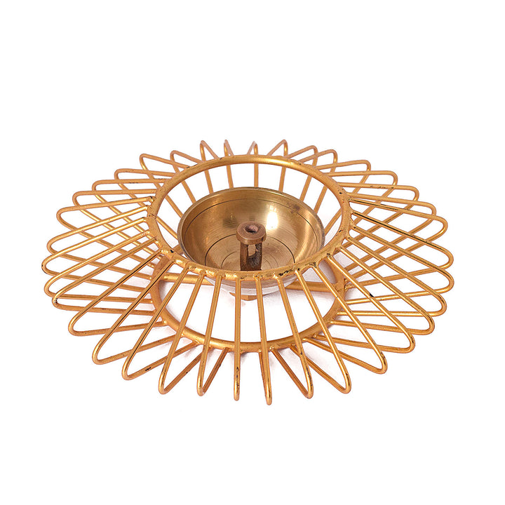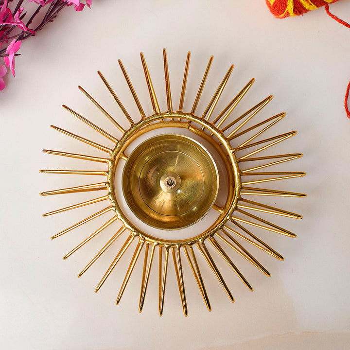 Gold-Toned Decorative Akhand Sun Shape Brass Diya