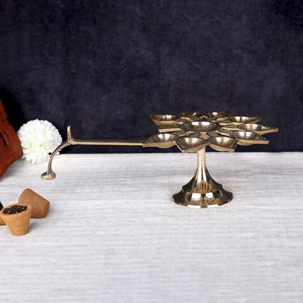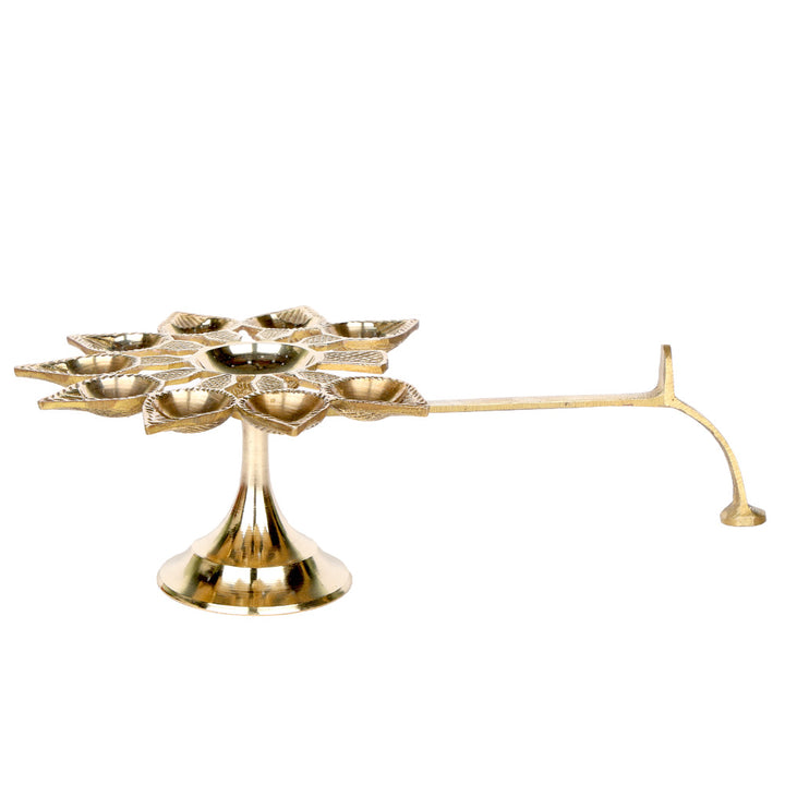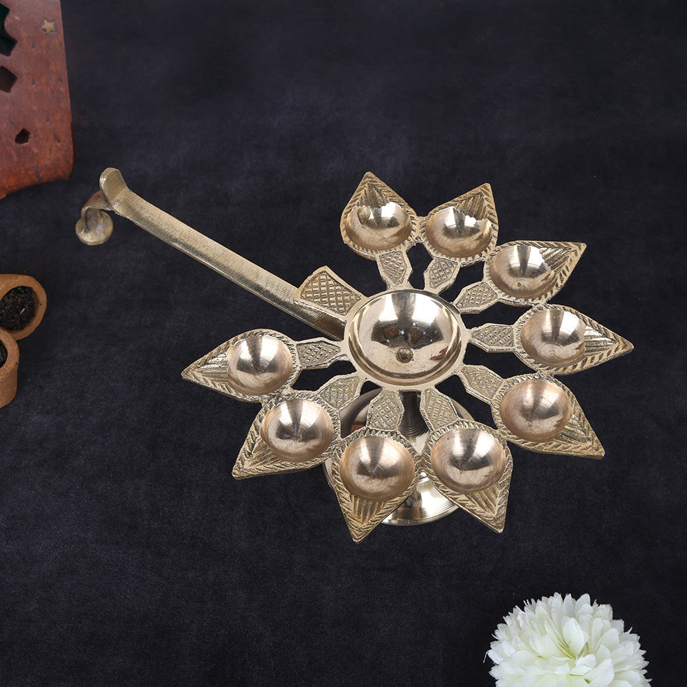 Brass 9 Mukhi Aarti Diya with Handle