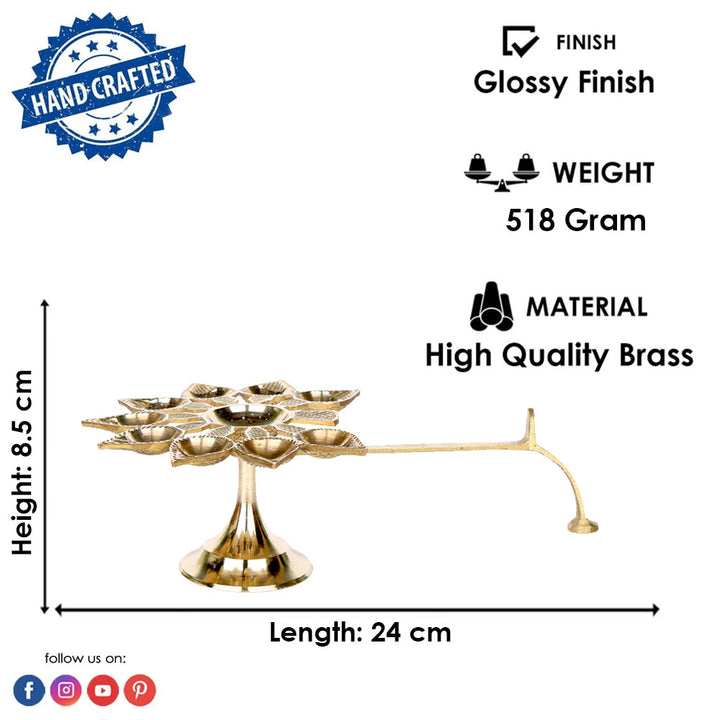 • Item Name: Brass 9 Mukhi Aarti Diya with Handle