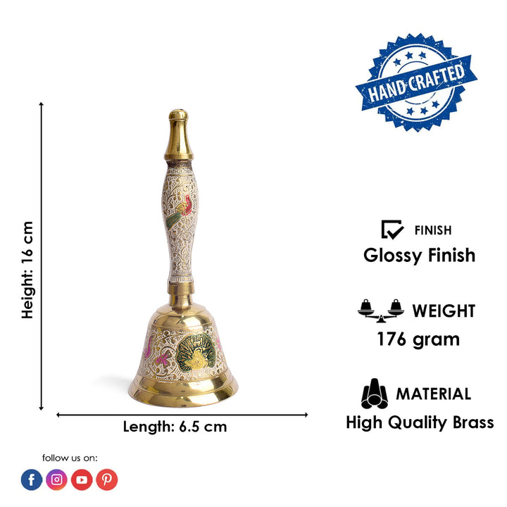 This brass pooja ghanti is made from 100% pure brass, ensuring durability, anti-tarnish quality, and a clear tone that resonates longer than ordinary bells. Available in multiple sizes—Small (4”), Medium (6”), and Large (8” and above)—each piece comes with beautifully hand-engraved motifs, such as Peacocks, Elephants, Floral patterns, or classic plain designs. These traditional carvings represent cultural and spiritual symbolism rooted in ancient Indian heritage. Whether you're setting up a home temple, using it in a mandir, or gifting it during a religious celebration, this handcrafted brass puja bell is perfect for all uses and occasions.