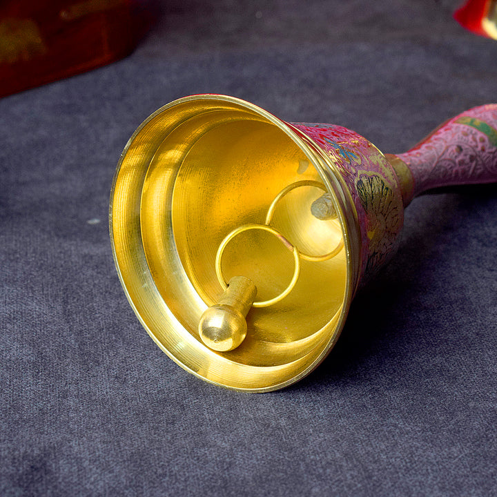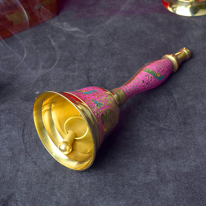 handcrafted brass puja bell | pink brass pooja bell | decorative pooja bell | temple bell for home | brass ghanti pink handle | puja accessories | traditional pooja ghanti | devotional prayer bell | Puja bell | Brass puja bell | Ghanti for temple | Hindu prayer bell | Aarti bell | Spiritual pooja bell | Temple bell | Ghanti for mandir | Brass aarti bell | Pooja ghanti online | Indian traditional puja bell | Handheld prayer bell |