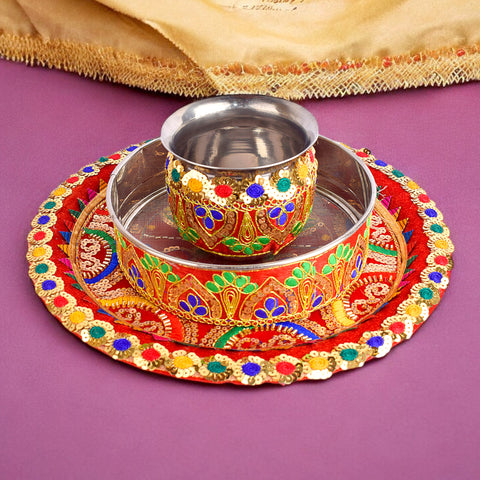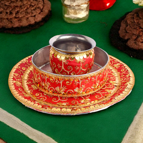 Red Karwa Chauth Thali Set ...