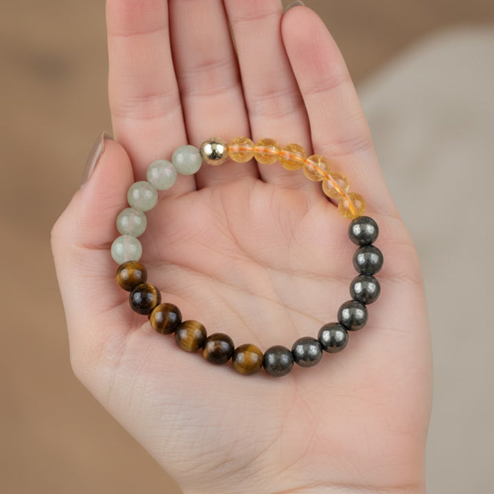 Ans. Money Magnet Bracelets are commonly made using Pyrite, Tiger Eye, Citrine, Rudraksha, or Karungali beads for wealth attraction.