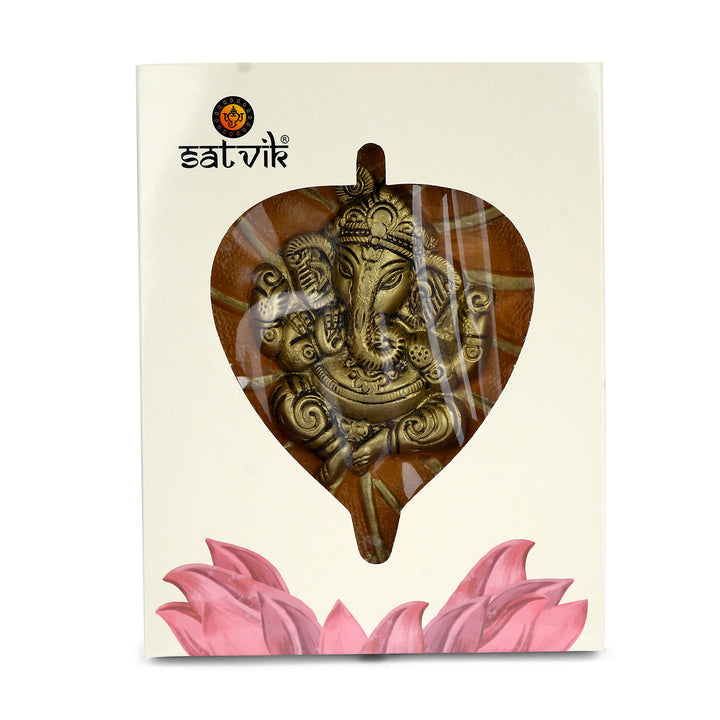 About product: Satvik Presents Designer Lord Ganesha On Leaf which is ideal for wall Hanging Decor for homes, offices, and Mandir. This Ganpati Sculpture has detailed work and it is made up of Premium Quality Material, Comes with Premium Gift Packing. Ganesha is a Symbol of the God of Success, Patron Of Music, Remover of Obstacles, and many other aspects. The Ganesha with a peepal leaf at the back is known as the most suitable Ganesha posture that ensures good luck and prosperity.