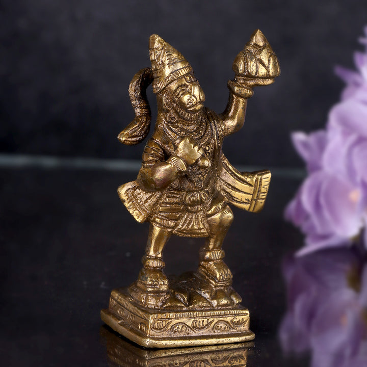 Puja Room Decor | Brass Gift Item for Housewarming | Premium Brass Idols for Sale | Handmade Brass Hanuman Idol | Antique Hanuman Statue | Exclusive Brass Idol | Brass Idol | Brass Hanuman Idol for Home Temple | Hanuman Car Dashboard Idol |