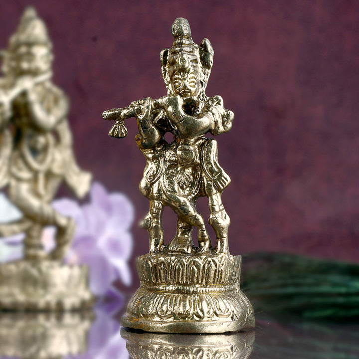 3.9 Inch Stunning Brass Krishna With Flute Idol