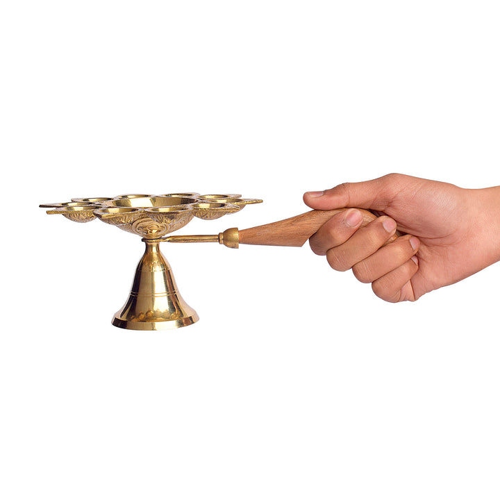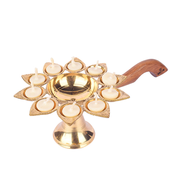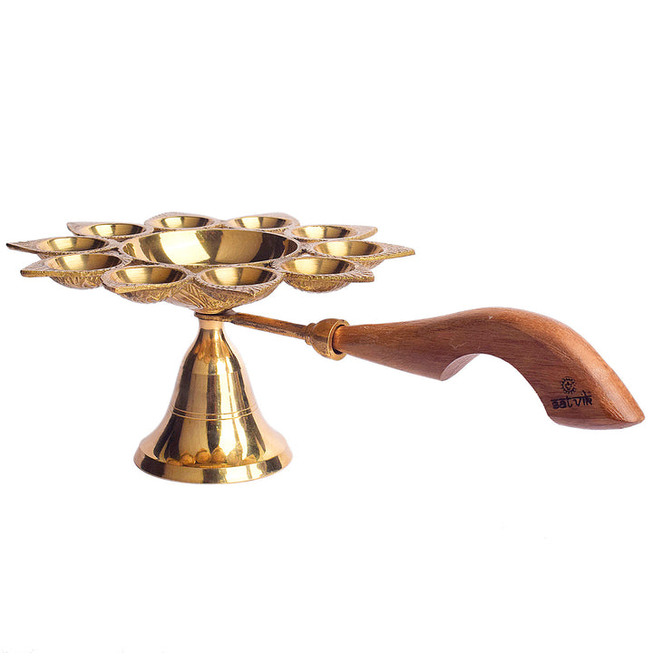 Dasmukhi Arti Diya with Wooden Handle