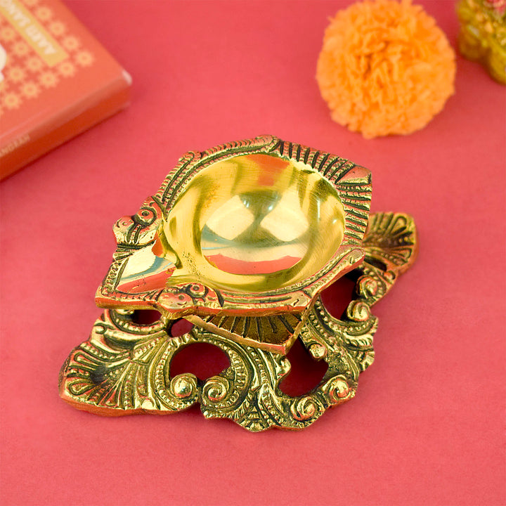 Designer Brass Diya | Brass Oil Lamp | Decorative Diya | Indian Puja Diya | Spiritual Lamp | Elegant Brass Diya | Brass Lighting Lamp | Traditional Diya | Home Decor Diya | Religious Diya |