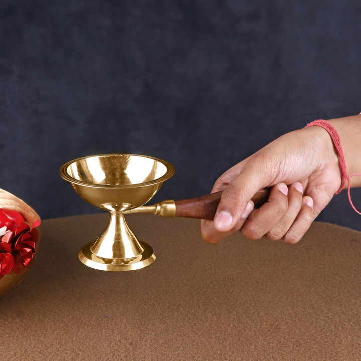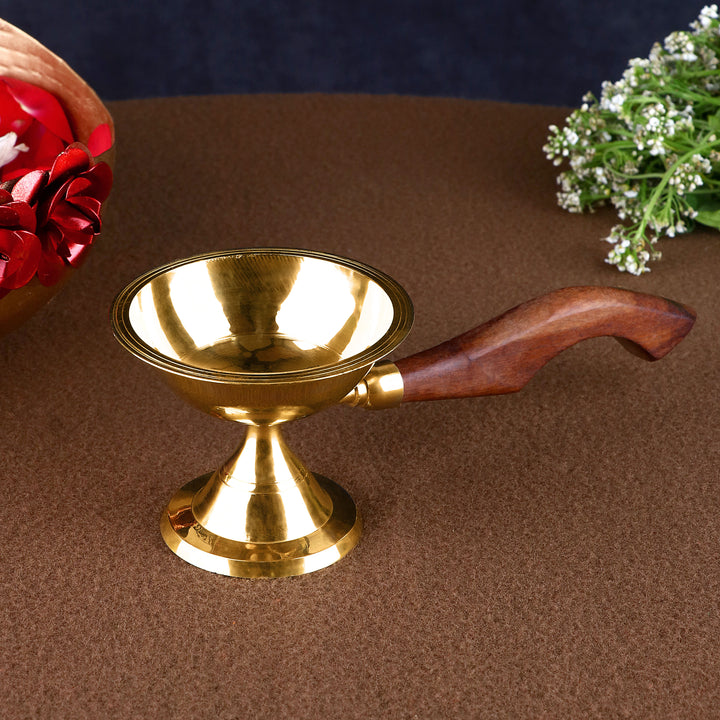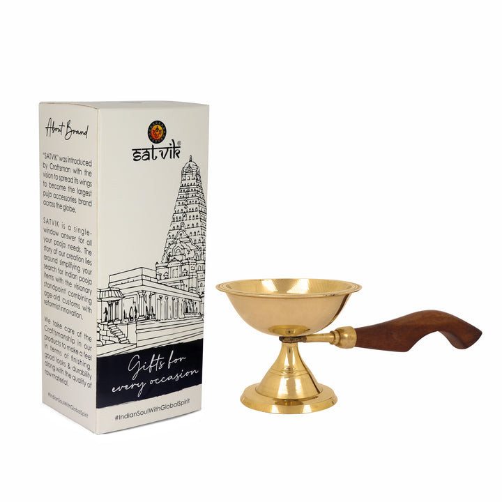Item Name: Pure Brass Aarti Diya with Wooden Handle