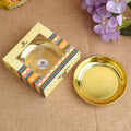 About Product: If you're searching for Indian decor to add something unique to your home, the beautiful Hindu Puja Thali, with its brass design, can easily be used as a display piece, even if you are not of the Hindu faith. For a bit of background, this piece is known as a thali, a traditional Indian serving tray. It may be filled with offerings and placed at a temple in a home as a part of puja or prayers. You can display the thali platter on a plate stand on a shelf or table and share some of the beauty and spirituality of Hindu religious practices with your friends and family.