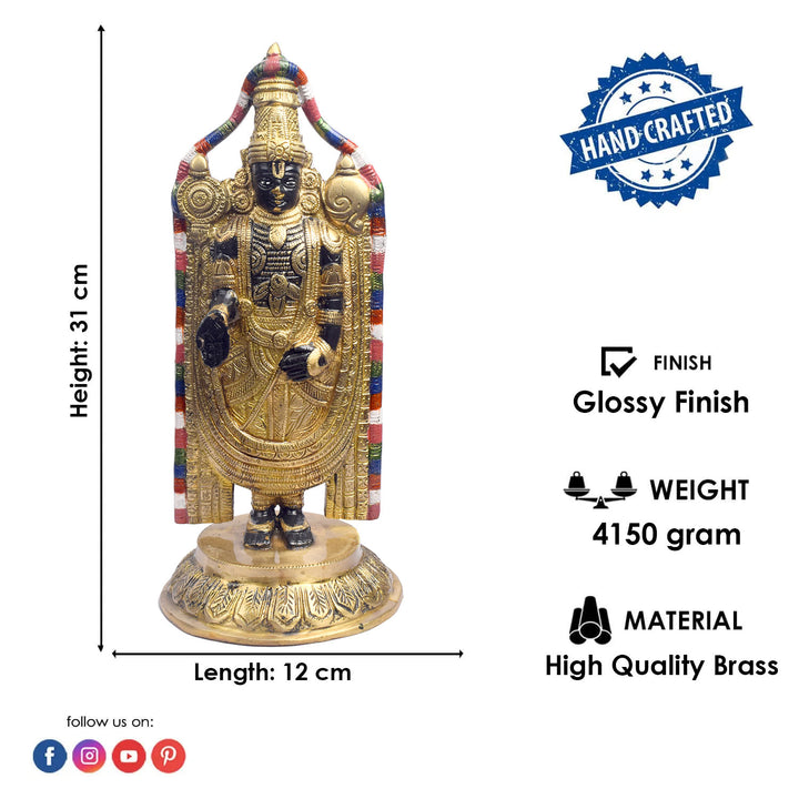 About Product: This 12.2-inch Tirupati Balaji statue beautifully captures the divine presence of Lord Venkateshwara, the beloved deity of the Tirupati temple. Crafted with exquisite attention to detail, the statue radiates grace, serenity, and spiritual blessings. Known for his power to bestow prosperity, health, and peace, Lord Balaji's idol brings a sense of calm and positive energy to any space. Perfect for your home, temple, or prayer room, this statue serves as a constant reminder of devotion and divine grace, inviting Lord Venkateshwara's blessings into your life.