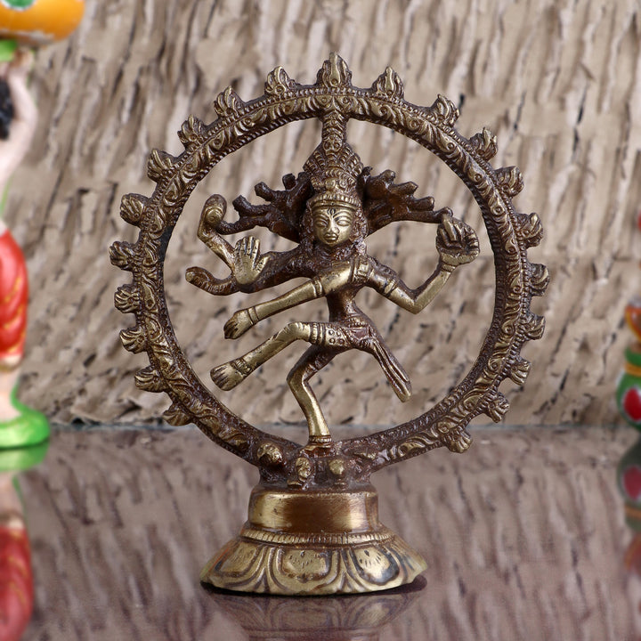 Brass Petite Nataraj Statue | Nataraj Brass Idol for Gifting | Decorative Shiva Dancing Idol | Brass Idol | Antique Finish Nataraj Brass Idol | Exclusive Brass Idol | Brass Lord Shiva Dancing Pose | Brass Nataraj Idol |