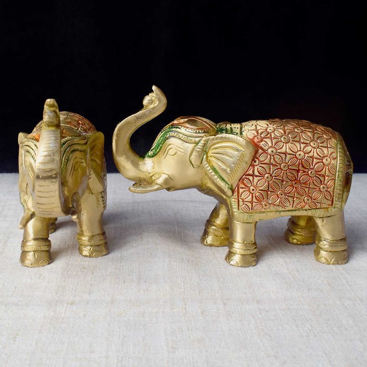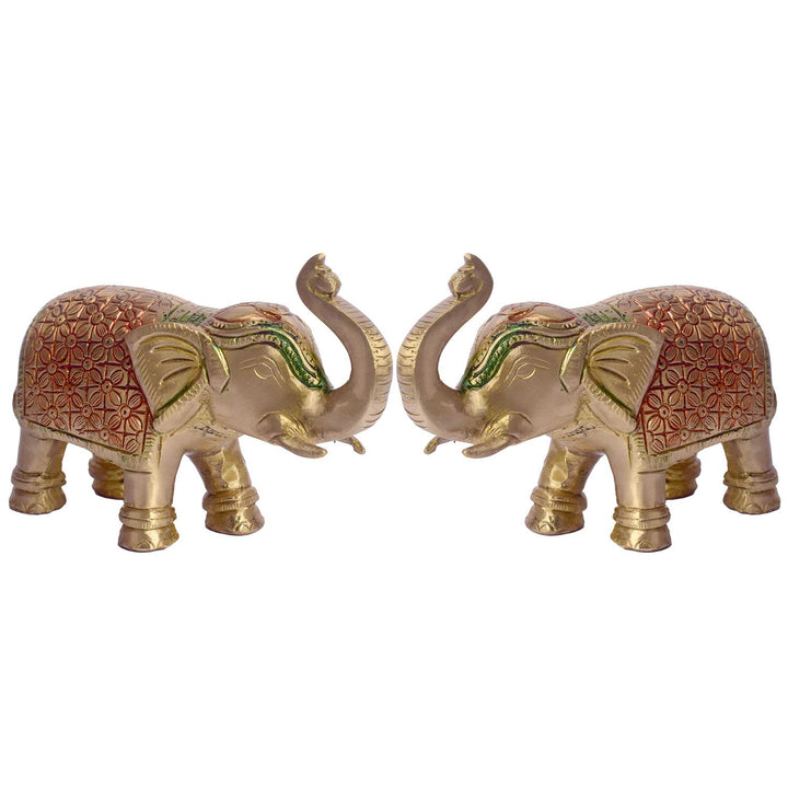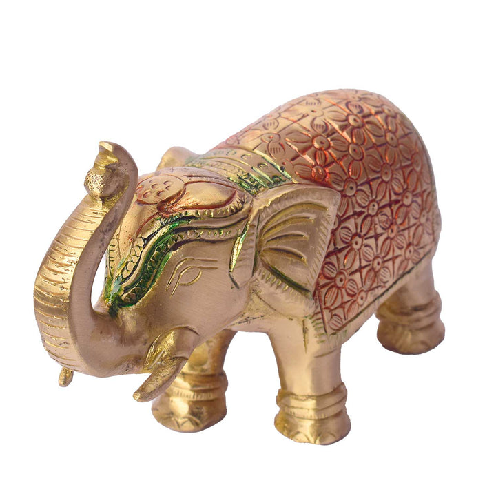 About the Product: Add a touch of grace and good fortune to your space with this 3.1 Inch Handcrafted Brass Elephant Statue. Beautifully detailed with traditional floral carvings and accented with hints of green and red, this elephant features an uplifted trunk—a symbol of prosperity, wisdom, and positive energy. In Vastu and Feng Shui, placing an elephant with its trunk raised is believed to attract wealth, luck, and protection.