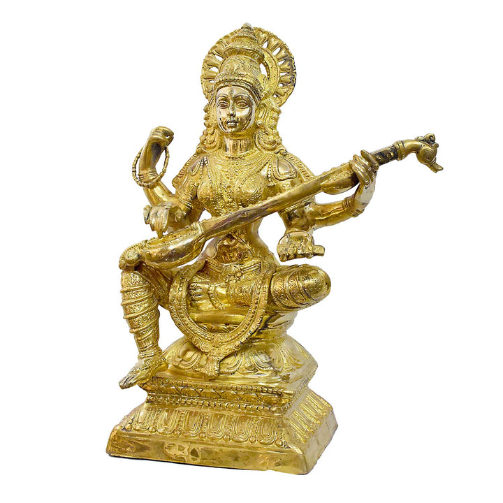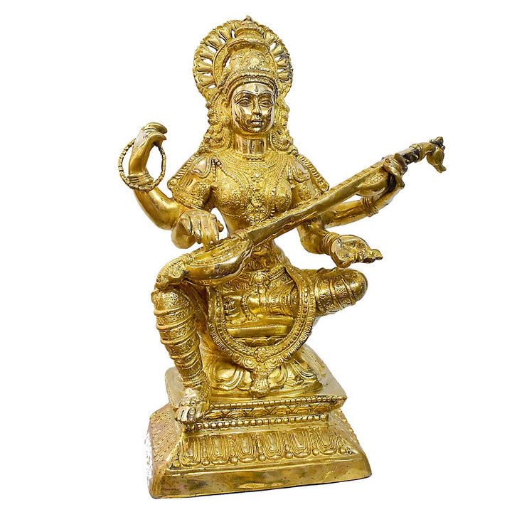 Buy Online | Brass Saraswati Mata with Veena Idol | Satvikstore.in – satvikstore.in