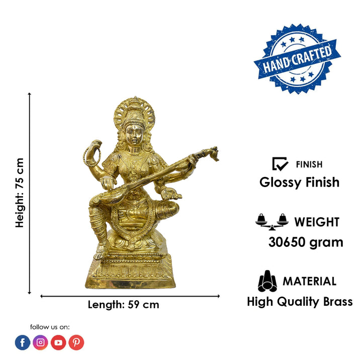 • About the Product: 29 Inch Veena Saraswati Brass Murti – Goddess of Wisdom & Music