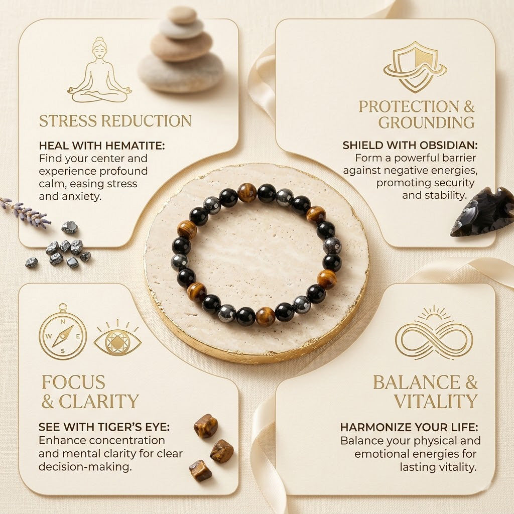 Energy Amplification – The Triple Protection Bracelet enhances the wealth-attracting energy of the 7 Horses Pyrite Frame, strengthening prosperity and positive vibes.