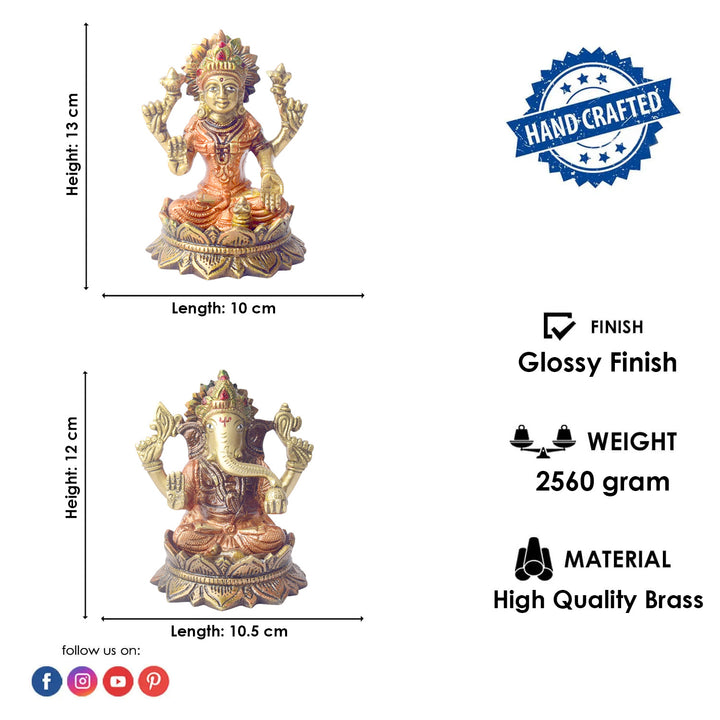 • Item Name: 4.7 Inch Handcrafted Lakshmi Ganesha Idol in Brass