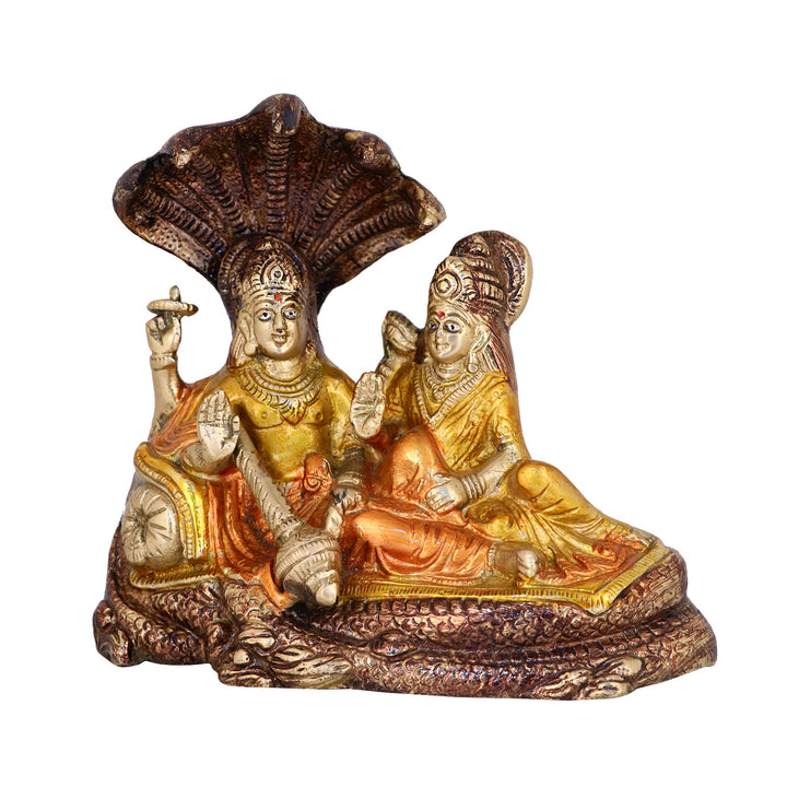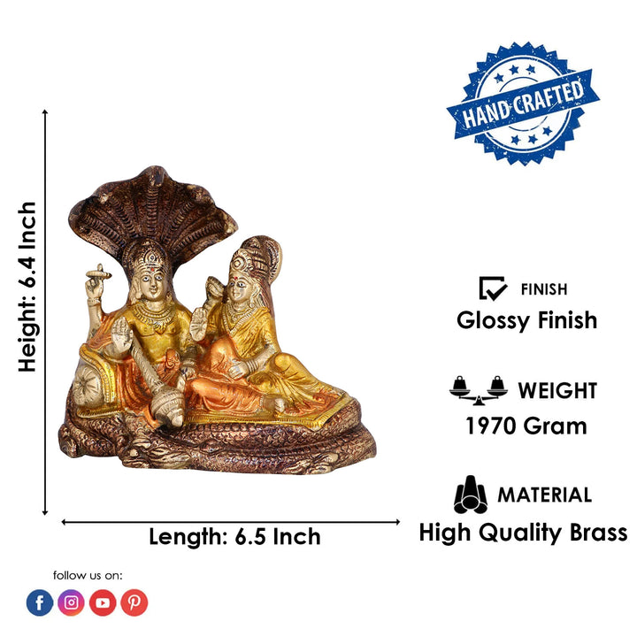 Brass Vishnu Laxmi Idol | Handcrafted Brass Vishnu Laxmi Statue | Colored Vishnu Laxmi Idol | Brass Vishnu Laxmi Resting on Shashnag | Brass Laxmi Narayan Idol | Puja Room Decor | Brass Vishnu Laxmi Idol for temple Decor |