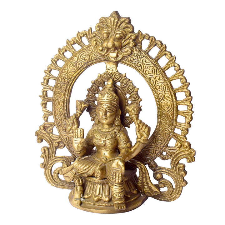 Brass Lakshmi Idol | Brass Lakshmi statue with Prabhaval | Lakshmi with Prabhaval | Puja Room Decor | Handmade Lakshmi Idol | Antique Finish Brass Idol | Brass Idol | Lakshmi With Prabhaval arch Idol |
