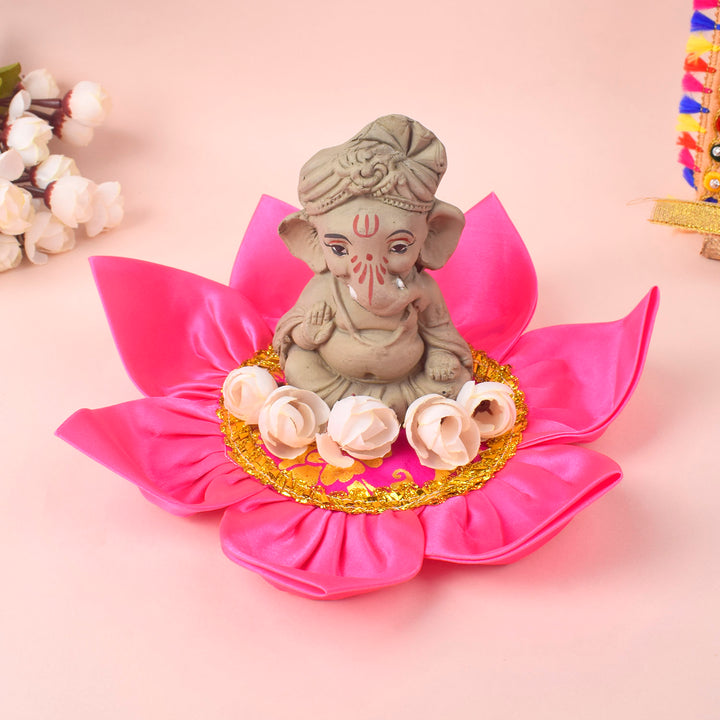 10.8 Inch Graceful Satin Lotus Design Pooja Mat