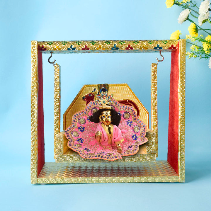 Product Name: Meenakari Art Jhula for Laddu Gopal – Traditional Wooden Swing