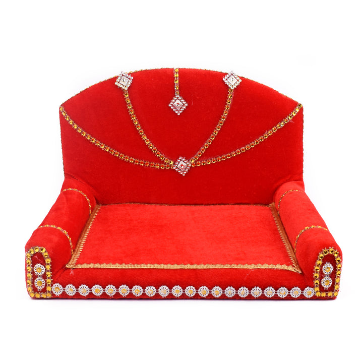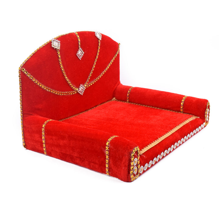 laddu gopal velvet singhasan | sacred singhasan for krishna | kanha ji pooja seat | traditional velvet singhasan | red velvet singhasan | pink krishna throne | yellow kanha ji seat | green velvet deity singhasan | large krishna throne | bal gopal pooja accessories | handmade velvet pooja furniture