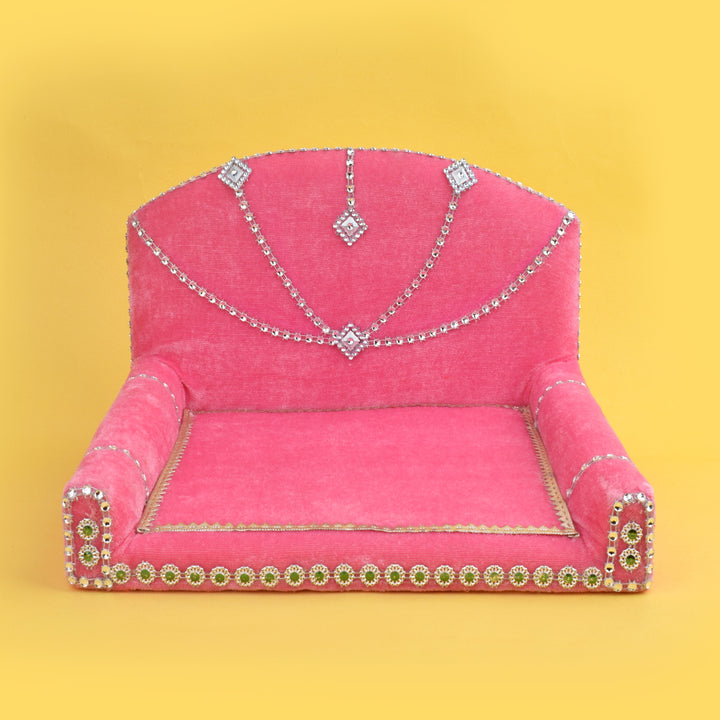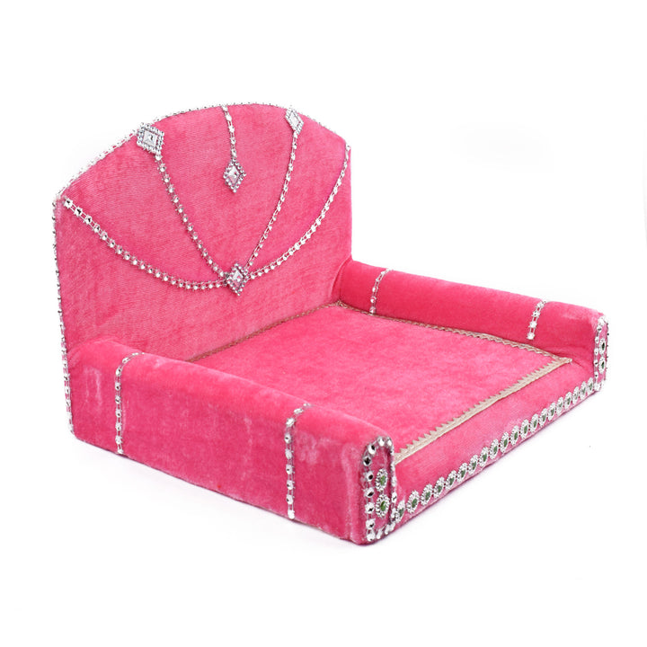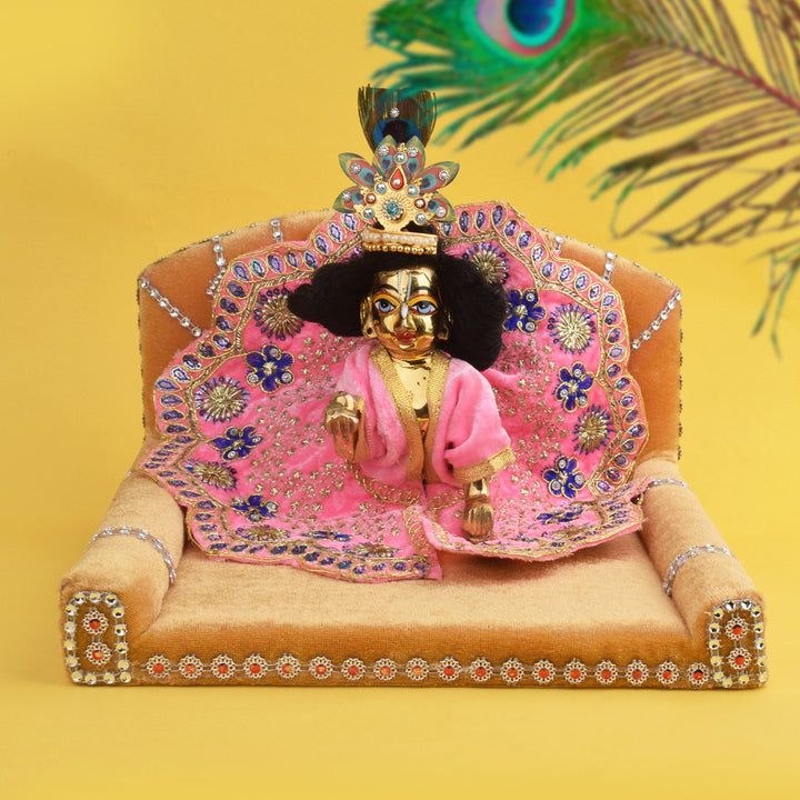 As you place your Laddu Gopal on this sacred throne, watch as the velvet embraces the little lord, showering blessings and grace upon your home. Its charming allure and captivating design make it a true centerpiece of devotion, adding a touch of splendor to your worship space.