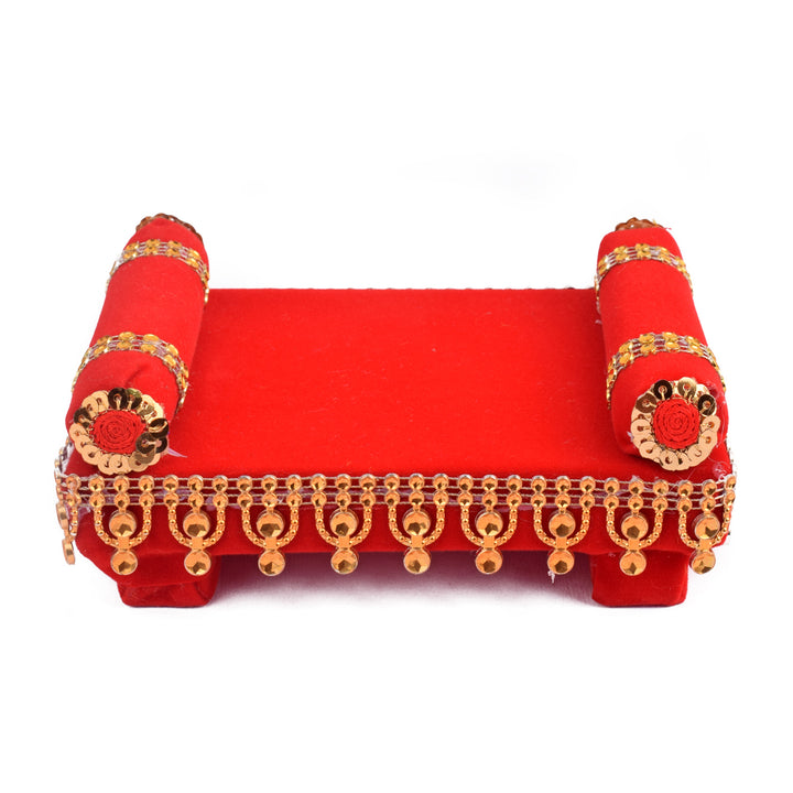velvet laddu gopal singhasan | royal deity throne | krishna singhasan velvet | bal gopal seat for mandir | traditional gopal singhasan | red velvet throne for laddu gopal | pooja accessories for kanha ji | raj singhasan for krishna | satvikstore divine decor