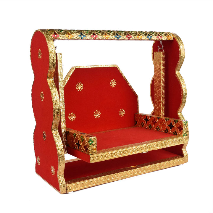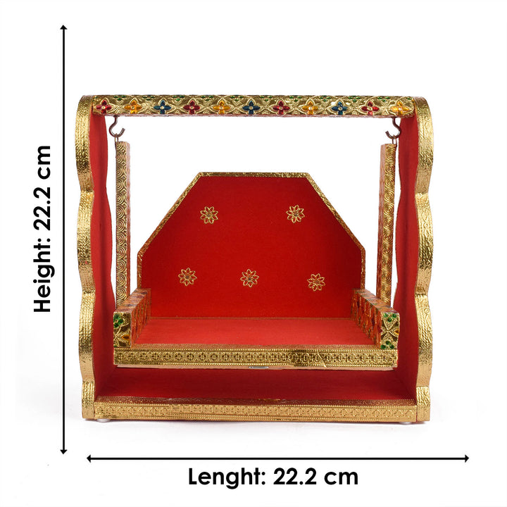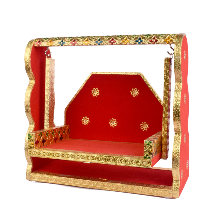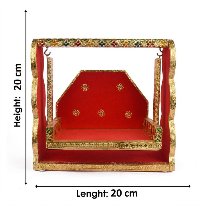 Item Name: Red Velvet & Meenakari Jhula – Multi-Size Designer Swing for Laddu Gopal