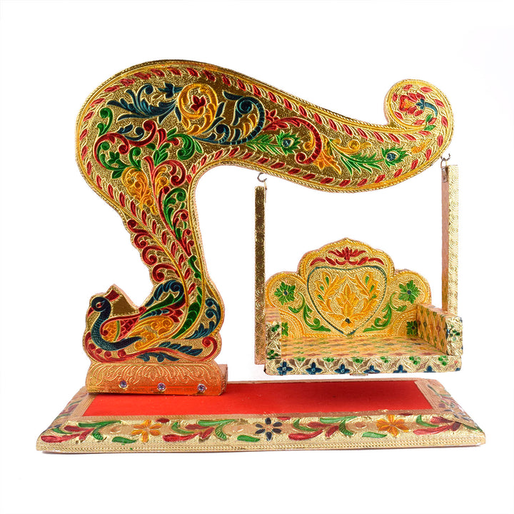 Expertly handcrafted by artisans from West Bengal and Uttar Pradesh, this jhula adds a majestic touch to any home mandir or festive setup. Especially ideal for Janmashtami, pooja decor, or gifting, this piece transforms any corner into a sacred darbar of devotion.