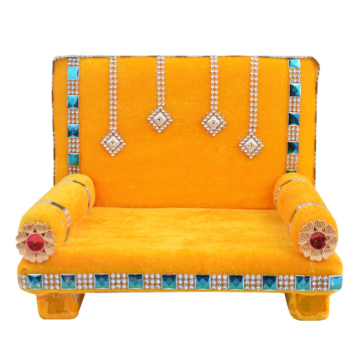 As you place your Laddu Gopal on this sacred throne, watch as the velvet embraces the little lord, showering blessings and grace upon your home. Its charming allure and captivating design make it a true centerpiece of devotion, adding a touch of splendor to your worship space.