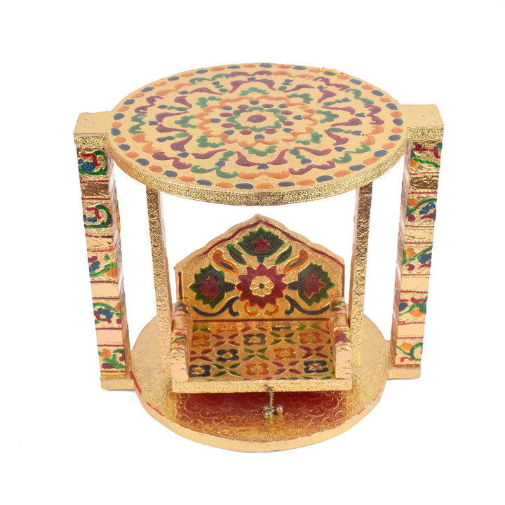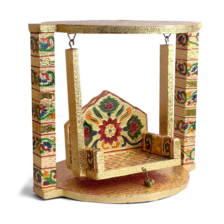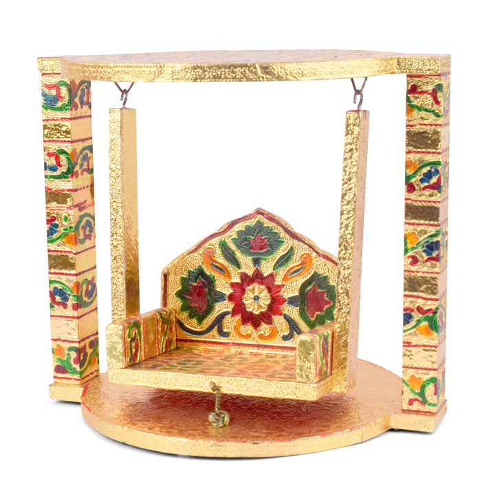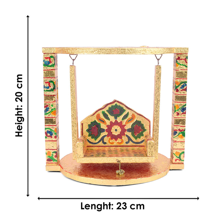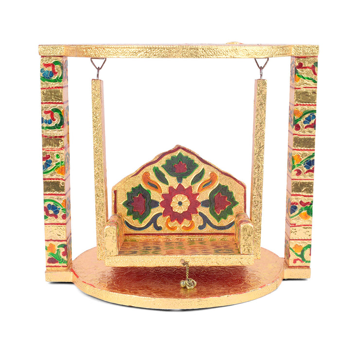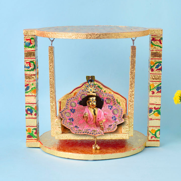 Item Name: Stunning Meenakari Jhula for Laddu Gopal – Golden Wooden Swing