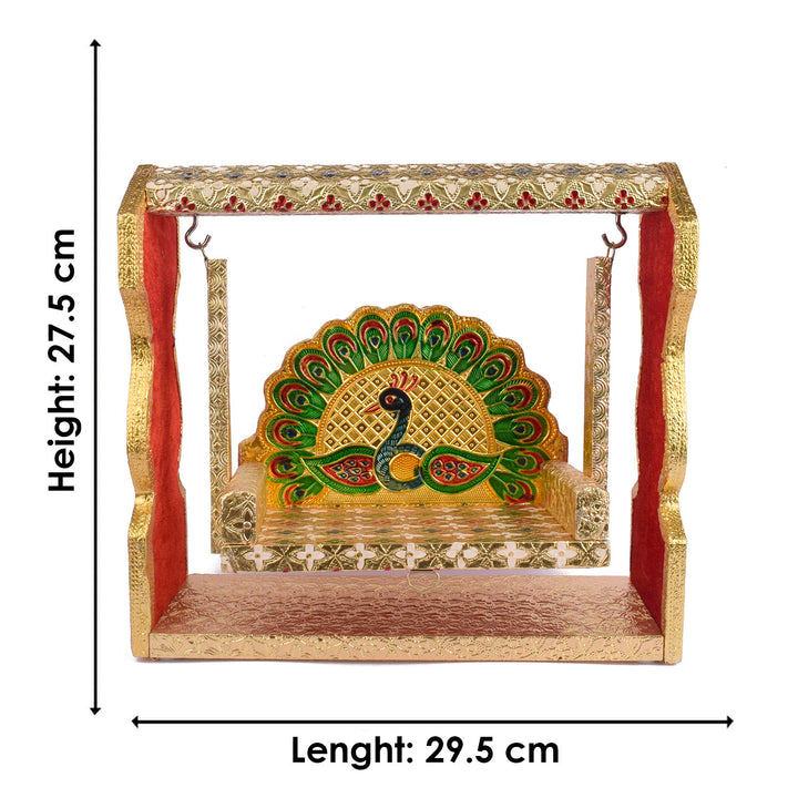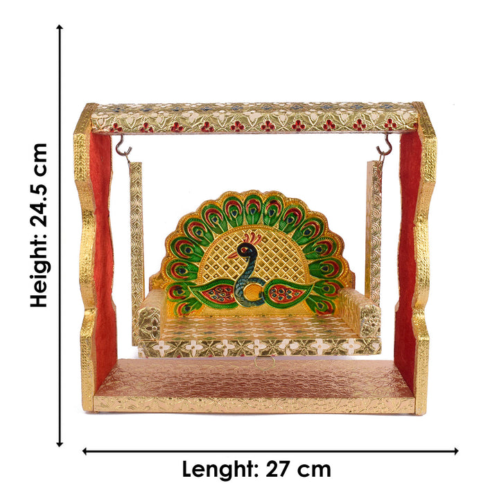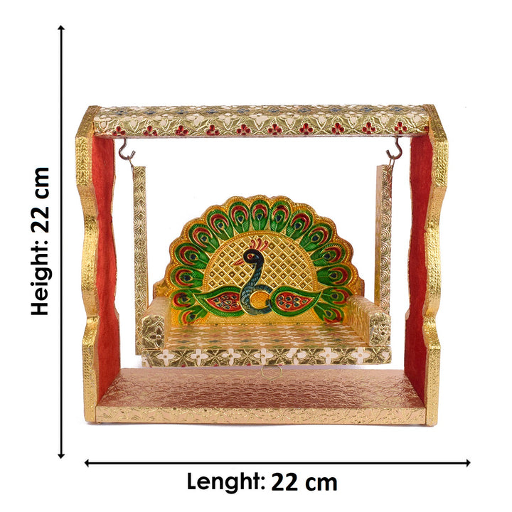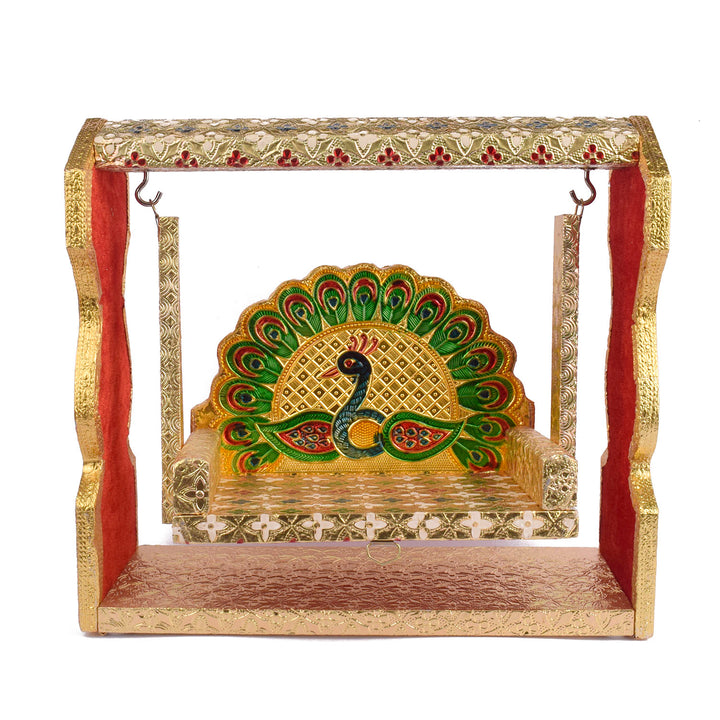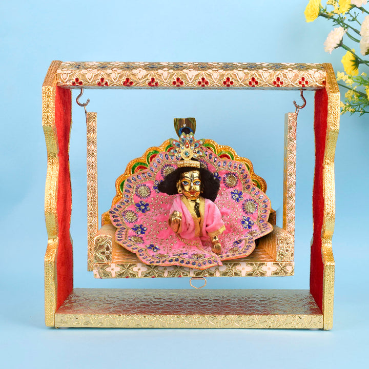 Bring divine elegance to your home mandir with this Traditional Meenakari Jhula for Laddu Gopal – an exquisite swing handcrafted from wood and decorated with detailed Meenakari artistry. The vibrant colors and fine patterns create a graceful backdrop for your beloved Krishna idol.