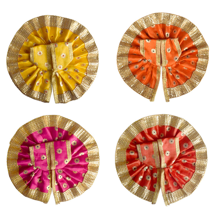 Infuse your Laddu Gopal’s wardrobe with a burst of color and joy with this Vibrant Floral Printed Dress. Beautifully designed in shades of orange, pink, yellow, and red, this delightful outfit radiates lively elegance. Available in sizes 0, 1, and 2, it features striking floral prints that add festive charm and divine beauty to your deity’s appearance. Perfect for Janmashtami, daily darshan, or special pooja occasions, this dress ensures both comfort and stunning visual appeal for your beloved Krishna.
