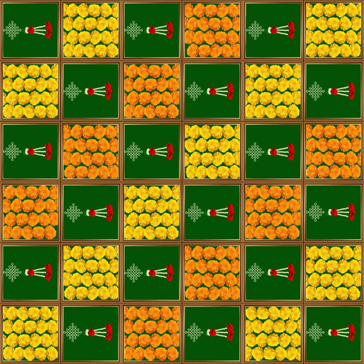 Genda phool backdrop cloth | Printed marigold flower cloth | Pooja backdrop decoration | Floral print pooja cloth | Temple decoration fabric | Festive mandir backdrop | Indian celebration decor | Marigold print backdrop |Β