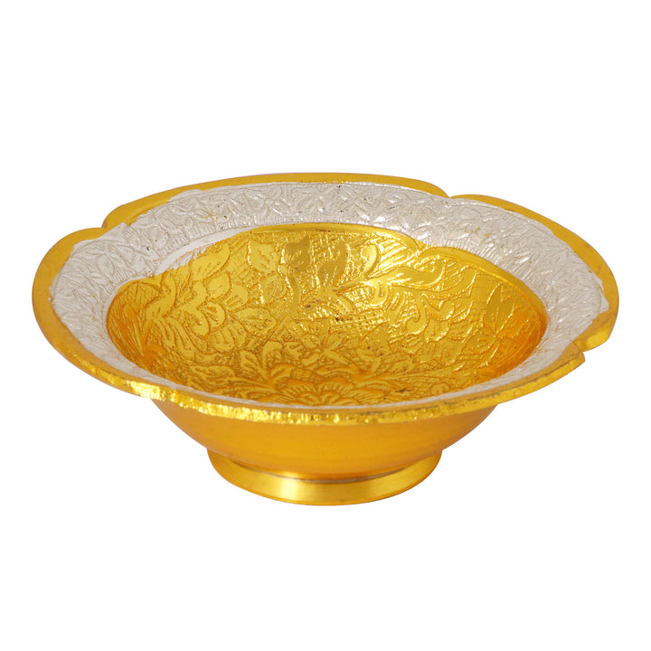 Buy Decorative Embossed Four Face Golden Base Bowl | Satvikstore.in – satvikstore.in