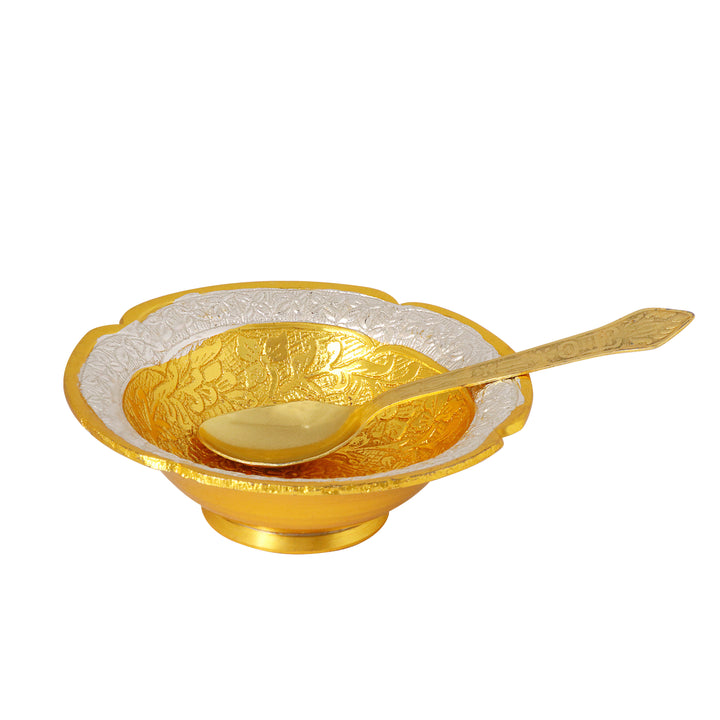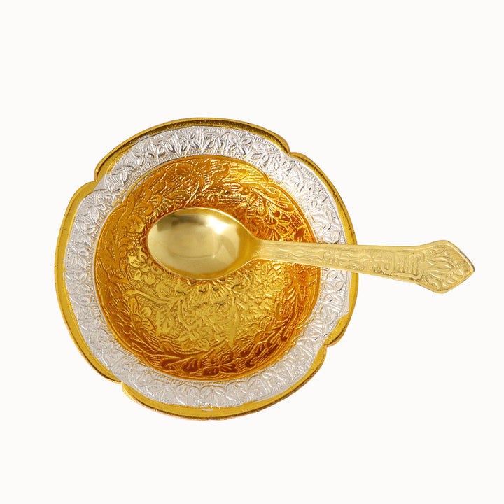 • Package Contains: 1 Pc Designer Embossed Bowl with 1 Spoon. This Set comes With Unique Royal Velvet Box Premium Gift Packing Set.