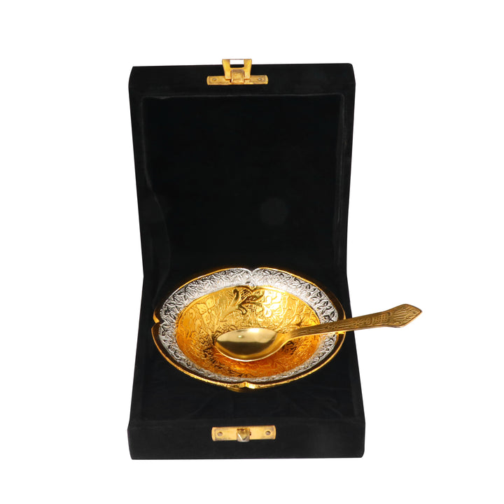About Product: Satvik Presents Gifts for all Occasions. Satvik Presents Royal Wedding Diwali Housewarming Gift Set which comes with Unique Royal Velvet Box Premium Gift Packing Set. The Bowl Set is made of Aluminum with Gold Silver Plated, This Bowl Set has eye-catching accents on its exterior. Sporting a silver finish, this Bowl Set makes a wonderful gift for Friends, Family, Corporate Gifting, Colleagues, and Business gifts. Christmas Gift, Perfect Gift.