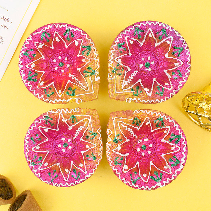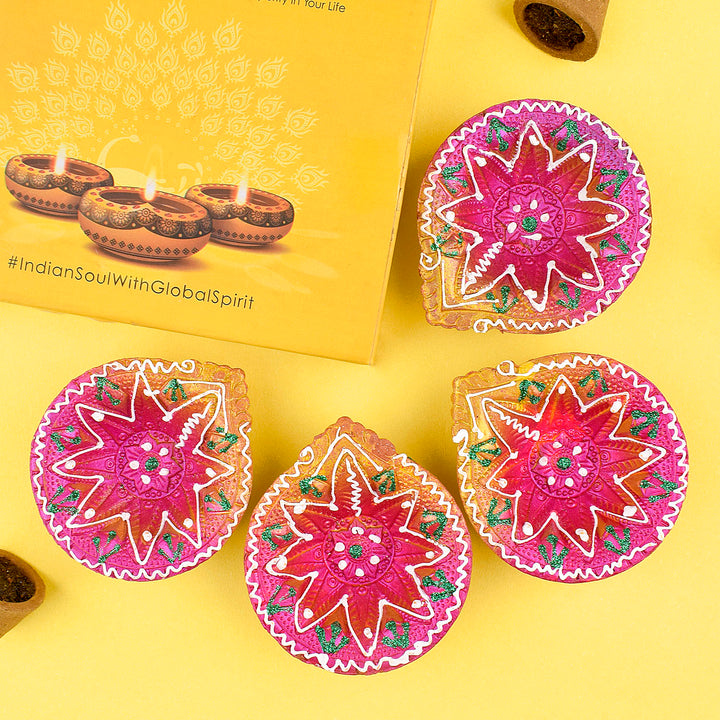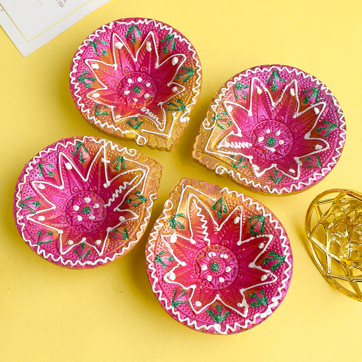 Festival of Lights Artisanal Clay Diyas to Brighten Diwali Set of 4