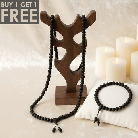 Wearing this divine ebony wood mala helps align your chakras, bring positivity, and aid in personal transformation.