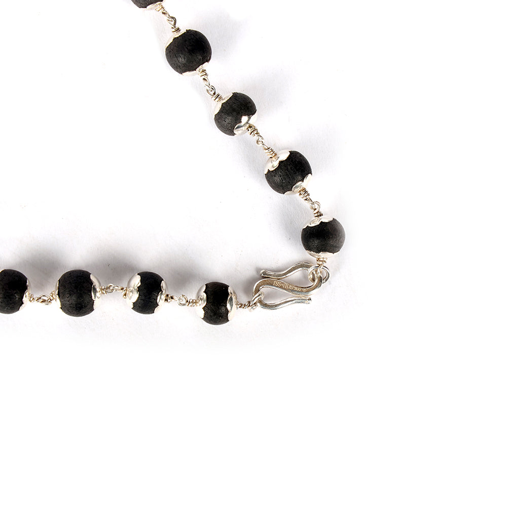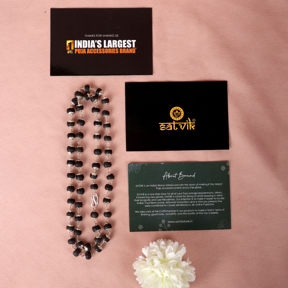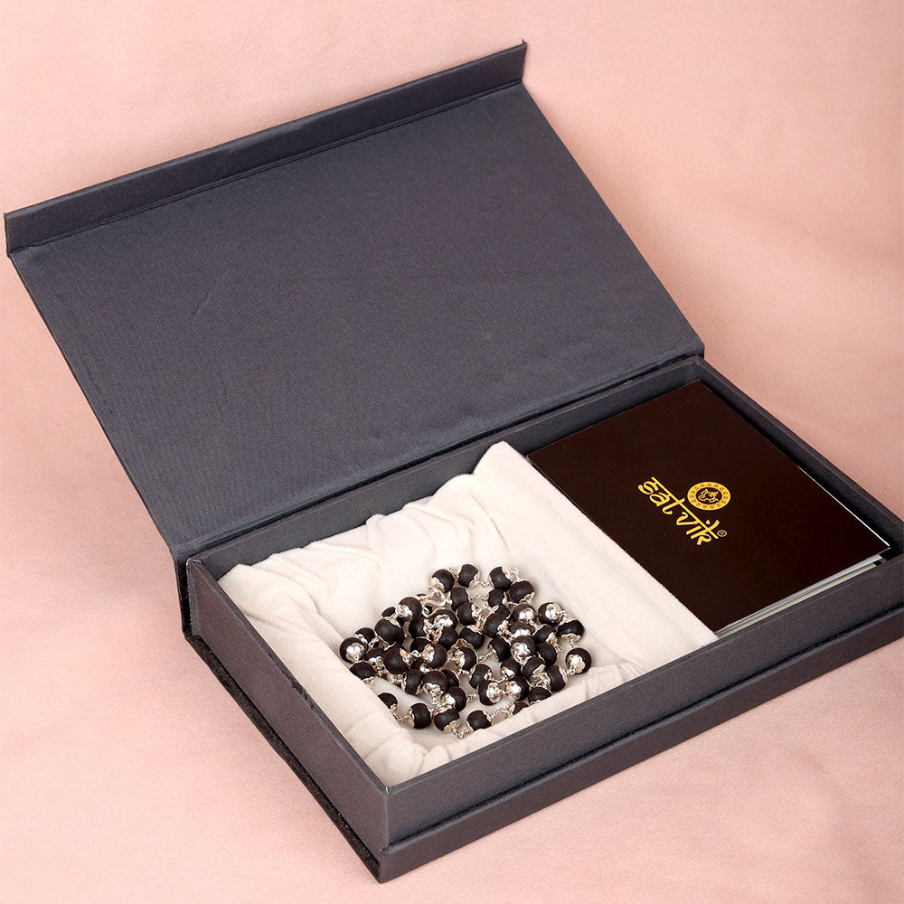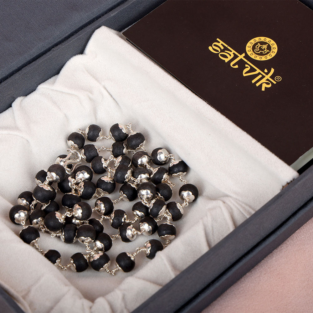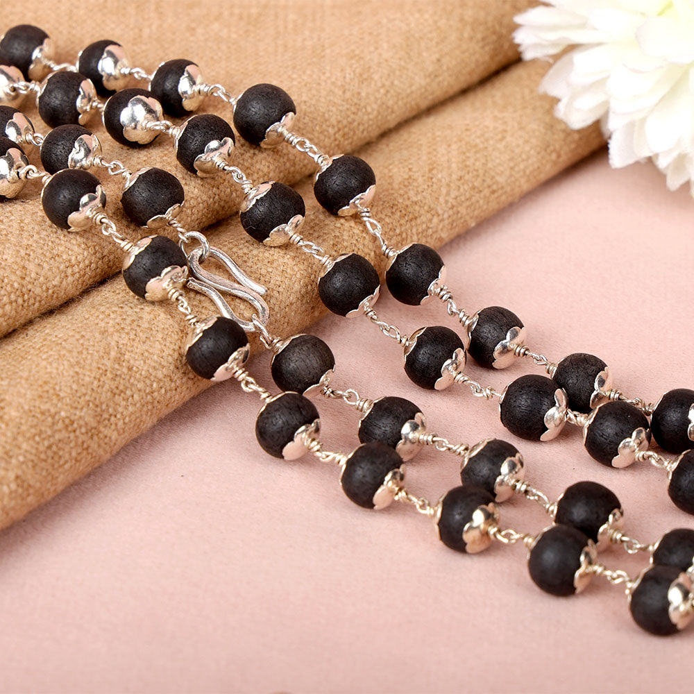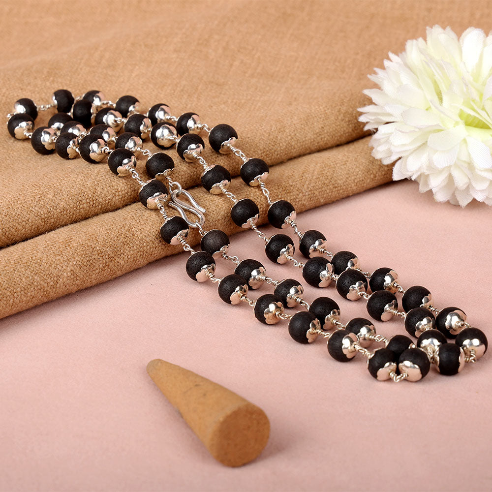 Govt. Lab Certified Original Ebony wood 925 Silver Caps Karungali Mala |satvikstore.in