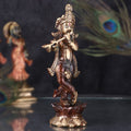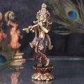 Brass Krishna Idol | Krishna Idol with Flute | Lord Krishna Brass Murti | Brass Krishna for Home Temple | Brass Gift Item for Housewarming | Premium Brass Idols for Sale | Handmade Brass Krishna Idol |