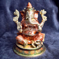 • Ganesha, the Elephant-headed God of wisdom, remover of obstacles, and patron of new beginnings, is shown in his typical form with a single tusk and a calm, benevolent expression.