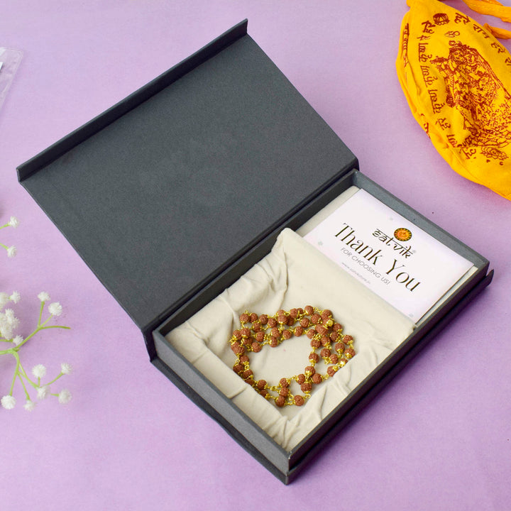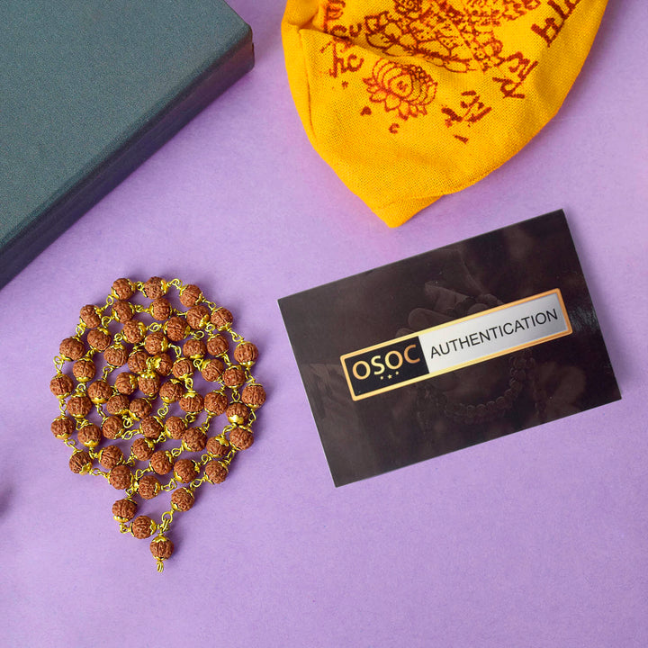 • Material: Certified 5 Mukhi Face Natural Rudraksha mala with Brass Capping