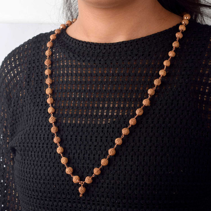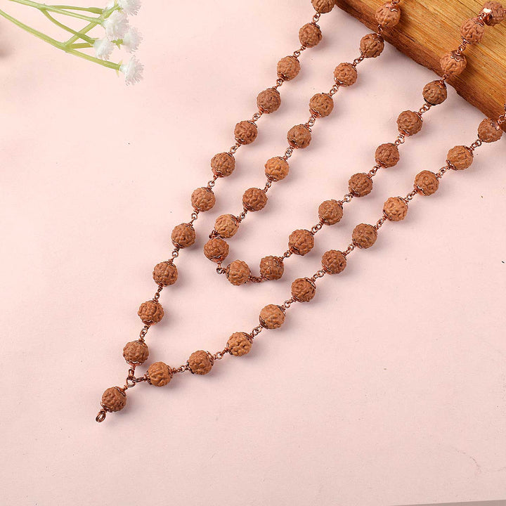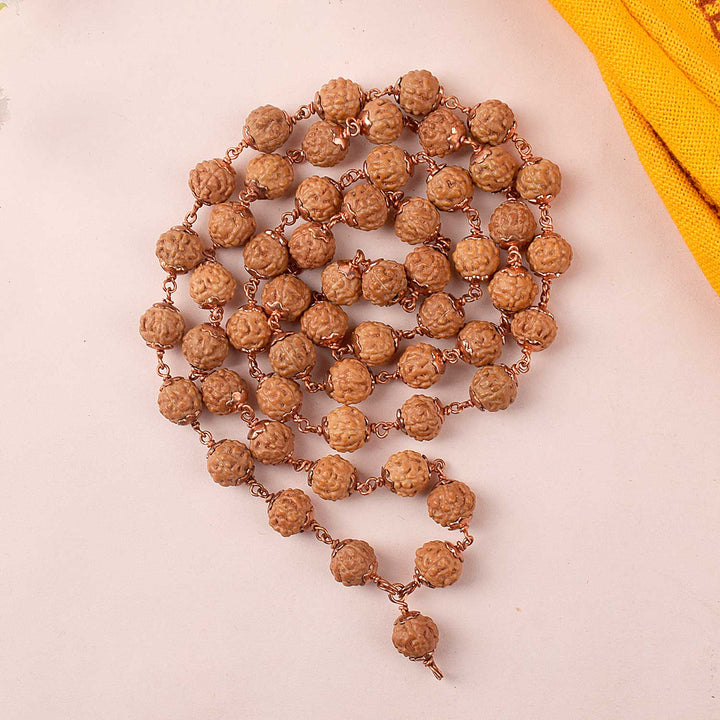 5 mukhi rudraksha mala | rudraksha with copper capping | spiritual mala | japa mala for meditation | original rudraksha mala | rudraksha mala for health | certified rudraksha beads | mala for daily prayer | rudraksha mala for stress relief