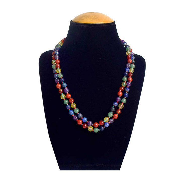 About Product: The 7 Chakra Hakik Mala is a sacred combination of seven powerful gemstones, each corresponding to one of the seven chakras in the body. Made from Agate (Hakik) and other natural stones, this mala promotes spiritual alignment, emotional balance, and energy healing. It enhances meditation, inner peace, and positivity, making it ideal for mantra chanting, spiritual practices, and daily wear