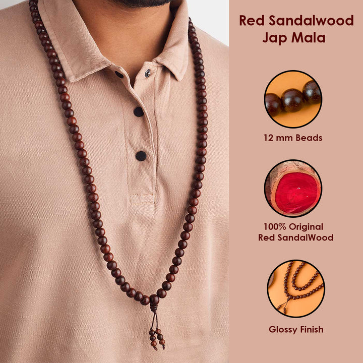 Red Sandalwood Jap Mala | Chandan Mala for Meditation | Natural Red Sandalwood Rosary | Handmade Chandan Beads Mala | Sandalwood Mala for Prayer | Mala for Hanuman Mantra |
